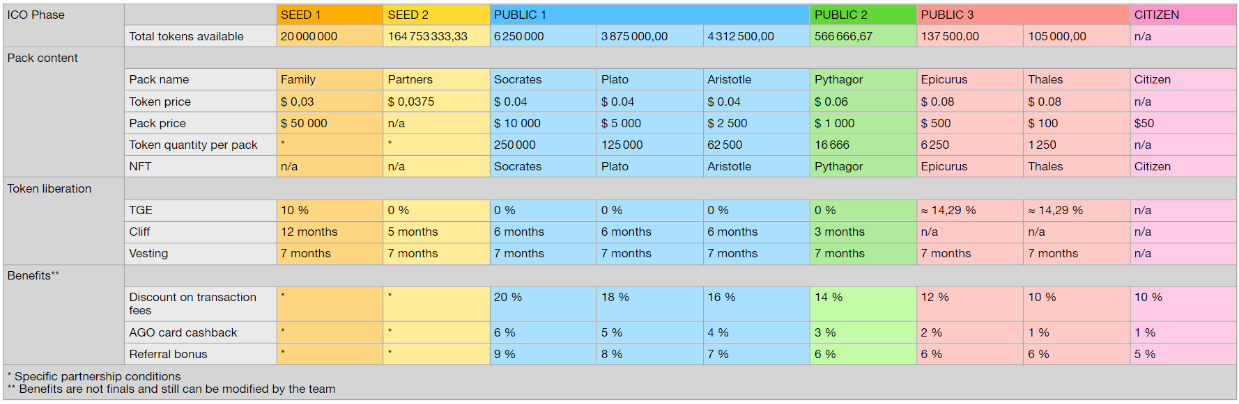 AGO allocated to the team and partners will be released over 60 months.