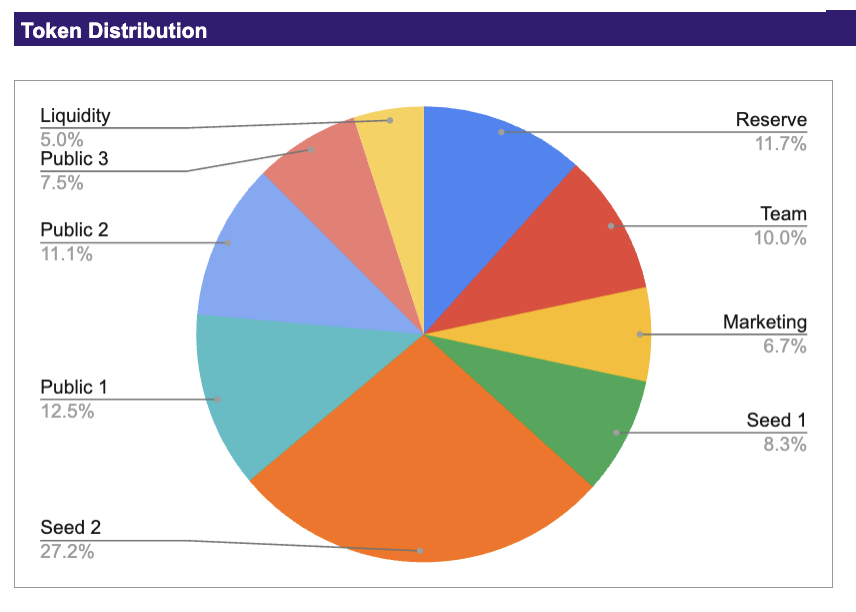 Tokens allocated to reserves will be used for the platformโs future development. Tokens will be released over 24 months.